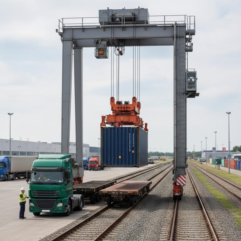 - Kranbare Sattelauflieger: Spezielle Trailer mit verstärktem Rahmen und Greifkanten, die direkt vom Lkw auf den Waggon gehoben werden.
