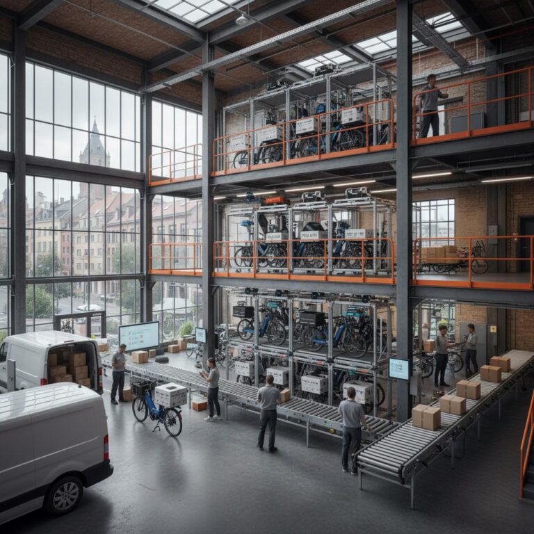 Ein City Hub ist nutzlos ohne die passende Flotte, die die Ware von dort aus weitertransportiert. Der Star dieser neuen Logistikkette ist das moderne Schwerlastenrad (Cargo Bike), das mittlerweile bis zu 250 Kilogramm Zuladung und teils sogar Europaletten transportieren kann. Diese Räder dürfen Radwege nutzen, an Pollern vorbei direkt in Fußgängerzonen einfahren und benötigen keinen Führerschein, was die Personalsuche erleichtert. Ergänzt wird die Flotte oft durch leichte Elektro-Nutzfahrzeuge (Light Electric Vehicles, LEV), die für schwerere Stückgüter eingesetzt werden.